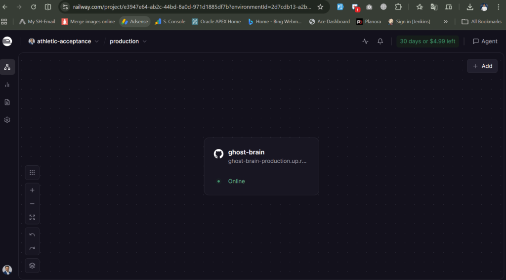 I used Railway’s free deployment tier. Push your code to GitHub. Connect the repo to Railway. Railway deploys it and gives you a public URL in about 60 seconds. Replace localhost:3000 in your APEX JavaScript with that URL and the CORS error disappears.